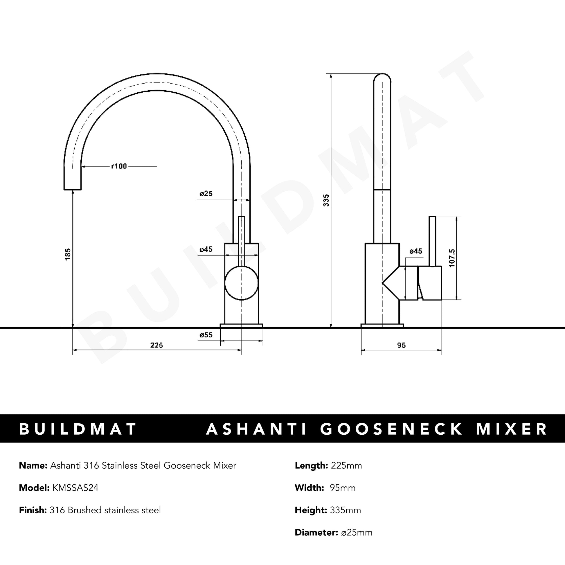 Upgrade your kitchen, laundry or outdoor alfresco with the Ashanti 316 Stainless Steel Gooseneck Mixer. Crafted with precision, this mixer promises durability and timeless style for your home.