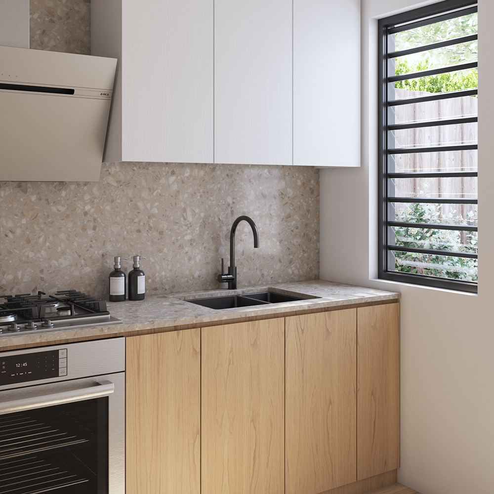 The Clara 595 sink is the perfect choice for a space-saving kitchen solution. This double bowl sink provides a larger main bowl (350x400mm) and a convenient mini bowl (180x400mm) which is perfect for smaller items. This compact size sink is suitable for a 600mm cabinet and is available in three different finishes (Brushed Stainless Steel, Brushed Gunmetal, Brushed Brass Gold) to match your style.