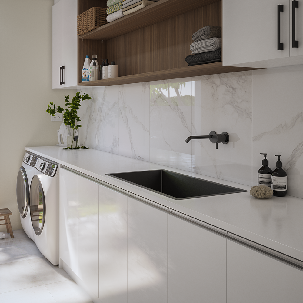 The Seville 900 is the perfect addition to any kitchen or laundry. Its spacious design and multi-functional capabilities enable you to mix and match it with sink accessories to maximize its usefulness. Perfect for large households and will accommodate a variety of kitchen and laundry tasks, such as washing large pots, baking trays or barbeque grills. It can even be used to bathe pets in! The possibilities are endless with the Seville 900.