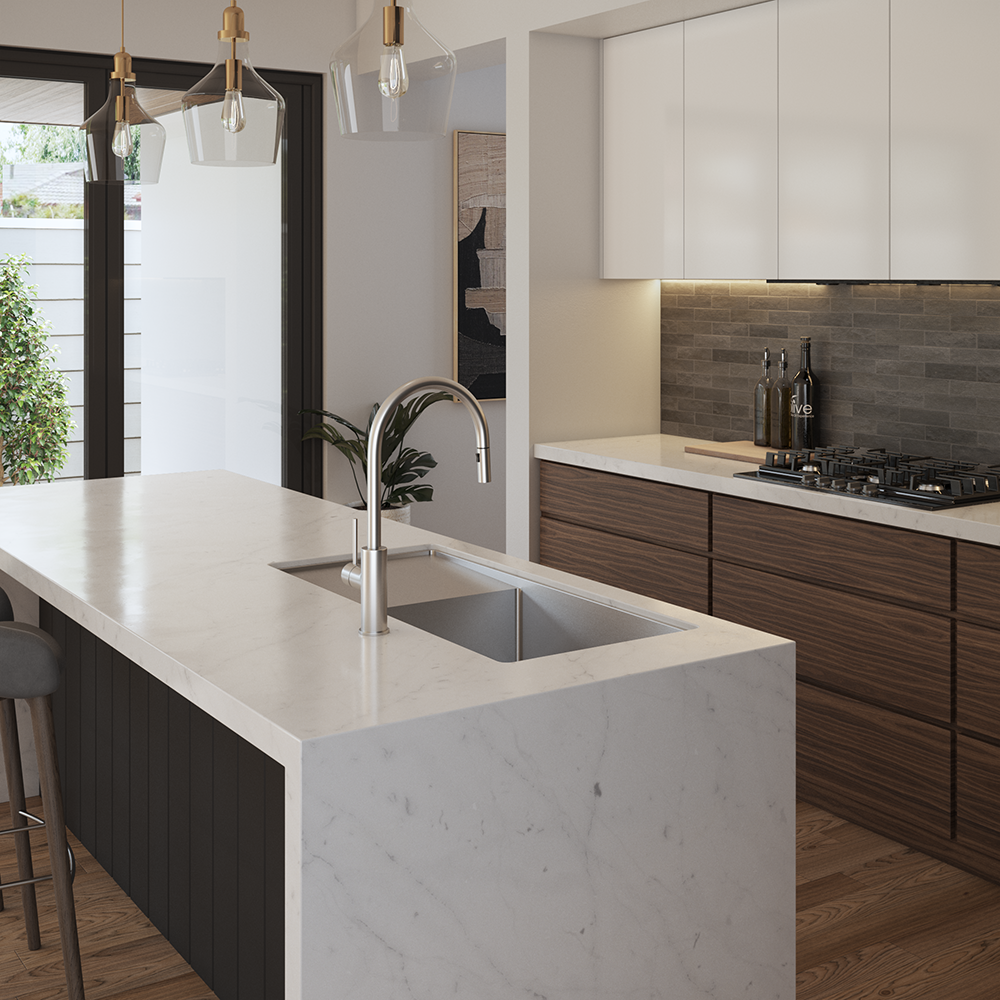 Even though usually people think that draining board sinks can only be installed topmount, but actually that was a fact of past our sinks have been designed so that they look elegant even when they've been installed as an undermount kitchen sink. If you are choosing to undermount your drainboard sink make sure you that you choose one that is high quality because once they've been installed it's very hard to remove or replace, and you don't want to choose something that doesn't suit your expensive bench top.