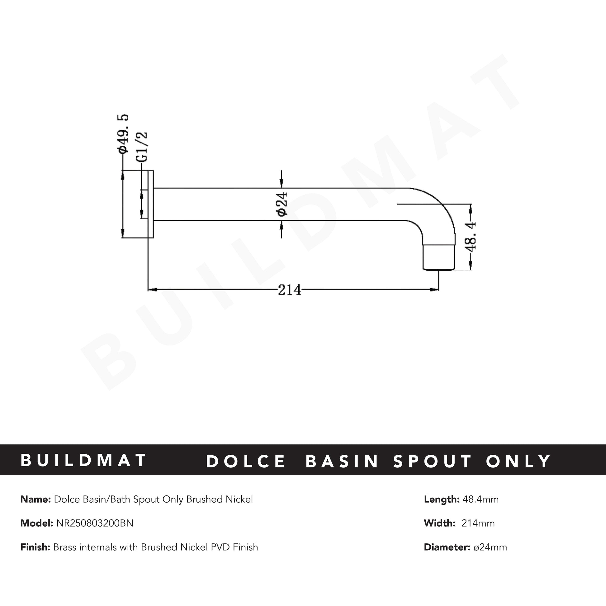 Dolce Basin Bath Spout Only 215mm Brushed Nickel