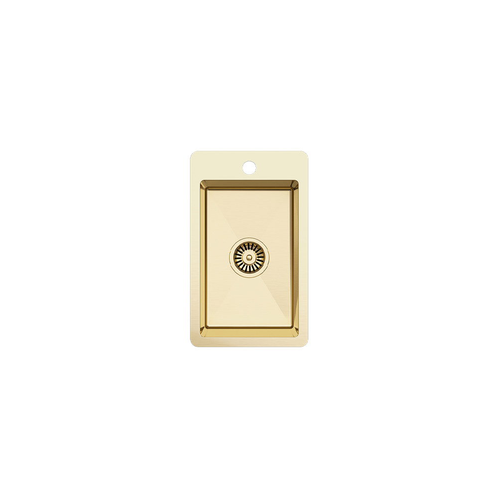 Harper 300x500 Single Bowl Butler Tap Landing Sink Brushed Brass Gold