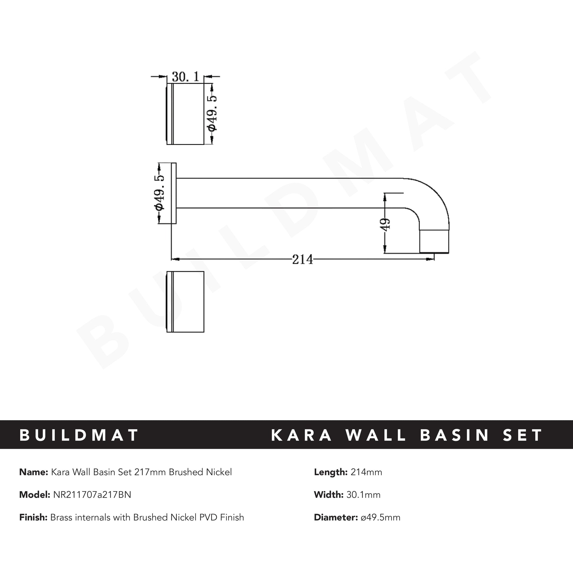 Kara Wall Basin Set 217mm Brushed Nickel
