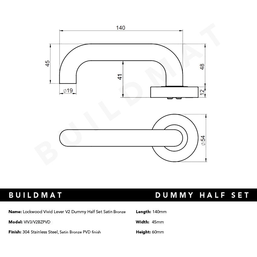 Lockwood Vivid Lever V2 Dummy Half Set Satin Bronze