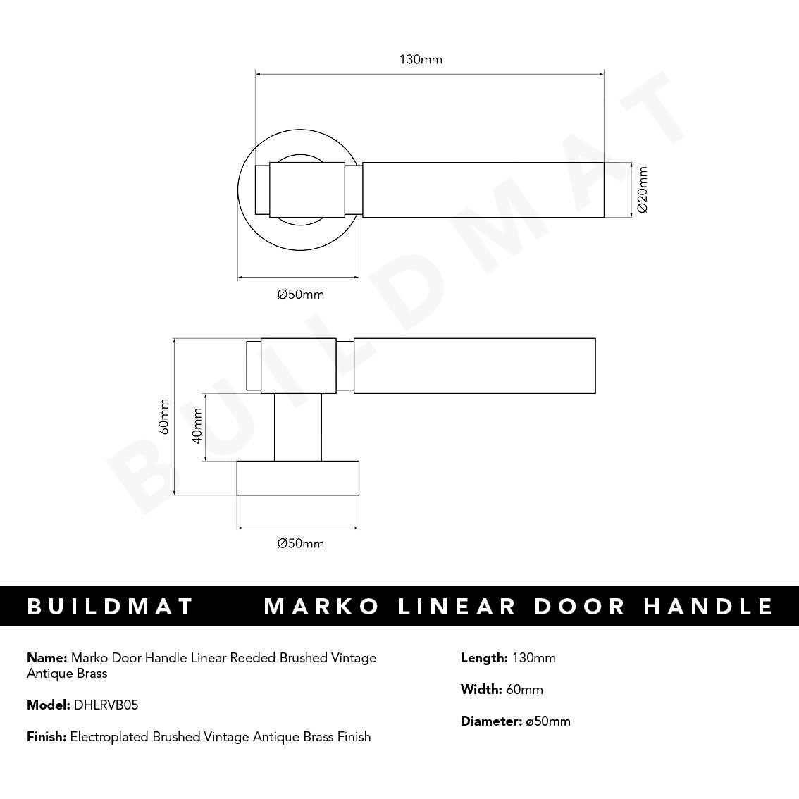 Marko Door Handle Linear Reeded Brushed Vintage Antique Brass