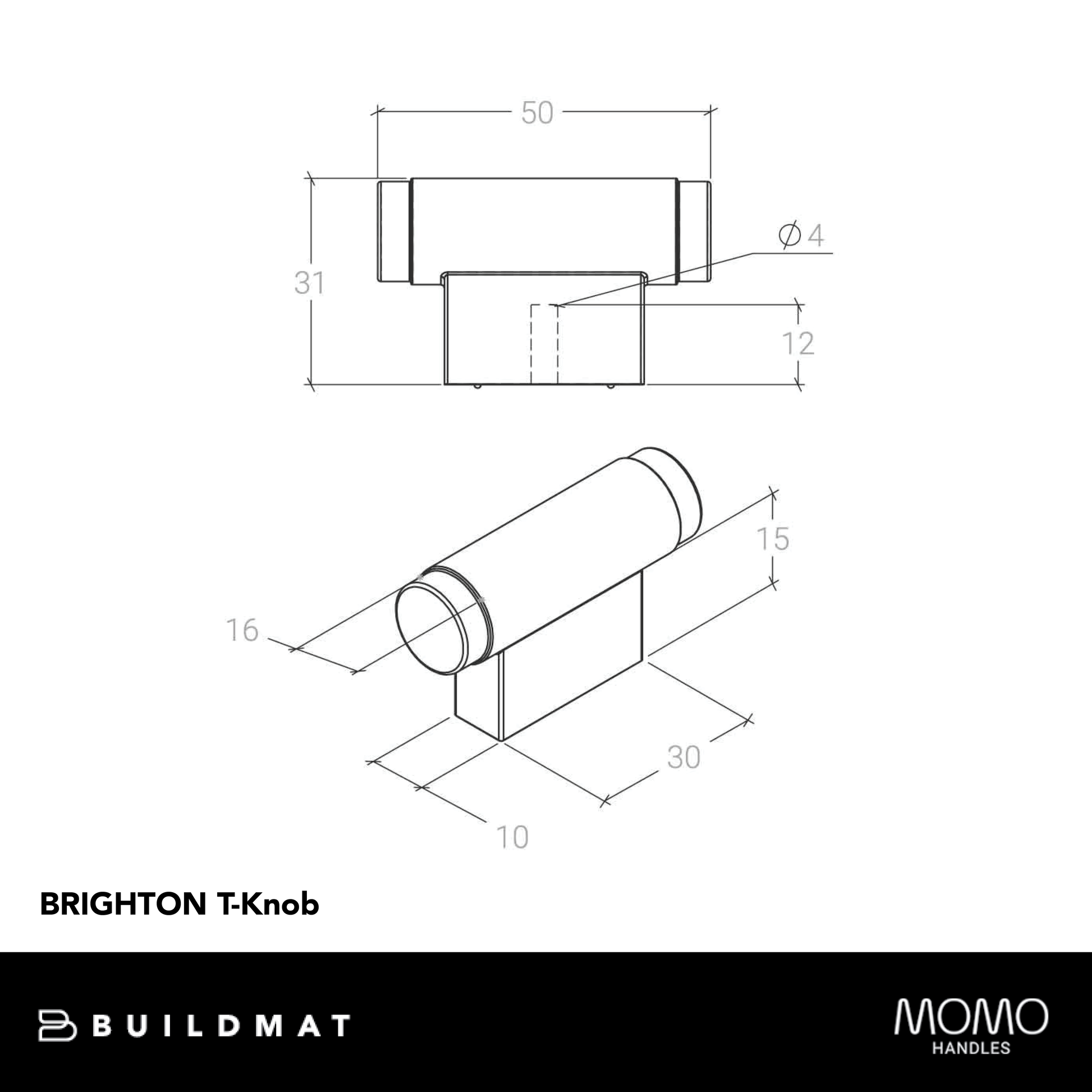 Momo Brighton Solid Brass T Knob 50mm Bronze