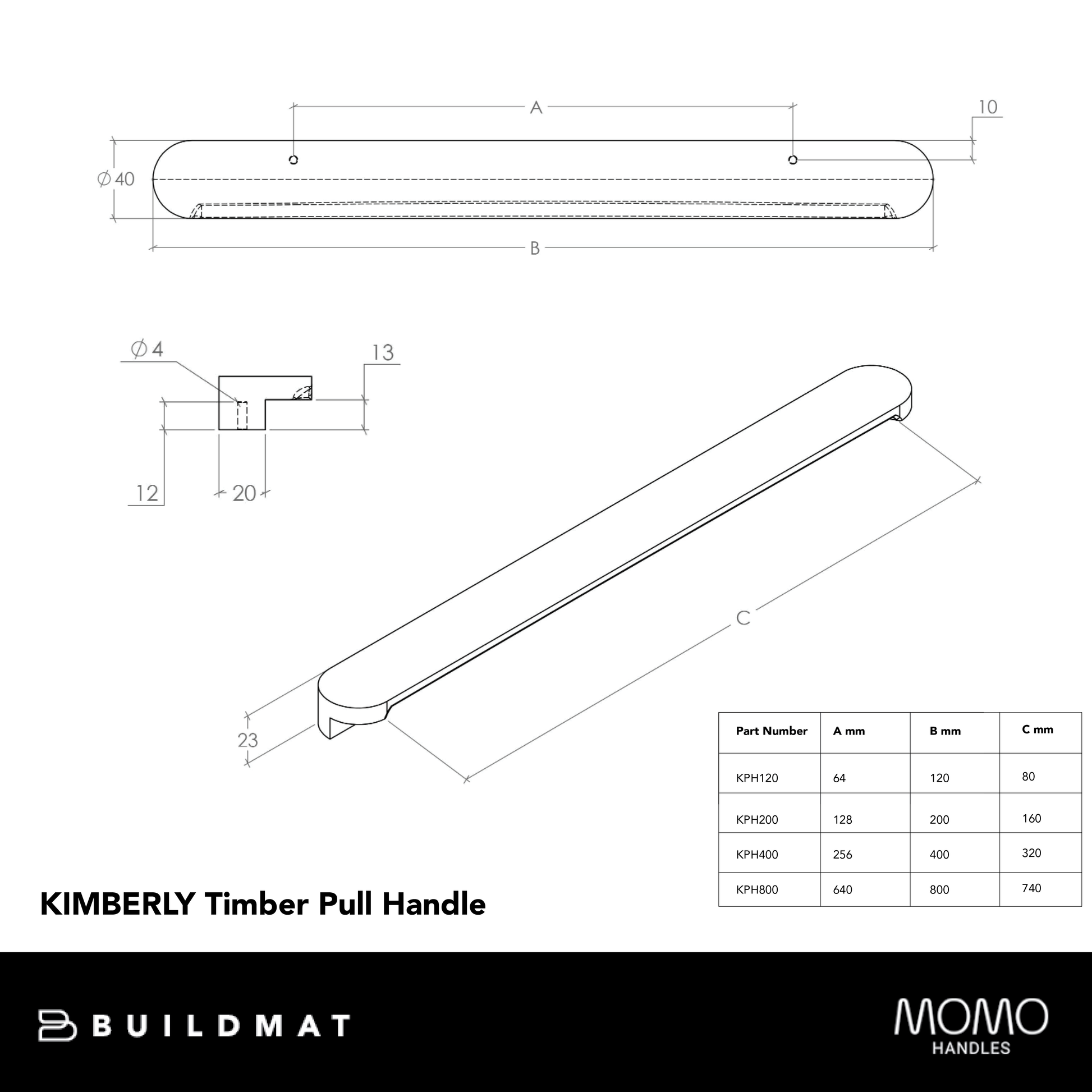 The Kimberley Pull Handle with its subtle curves and clean lines is available in three lengths, perfectly suited to a wide variety of cabinetry styles. Available in American Oak or Walnut timber.