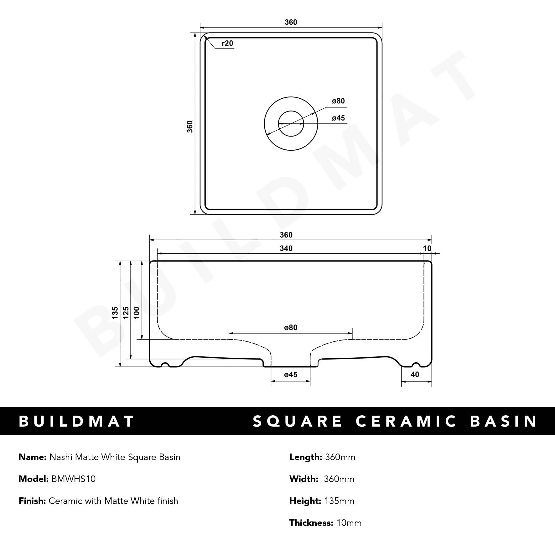 The Nashi Matte White Square Basin is a classic and timeless design perfect for any bathroom style. Crafted from solid ceramic material, this basin provides a natural look and feel while also offering resistance to extreme temperatures, scratches, and permanent stains which makes it suitable for daily use. Enjoy beauty and durability with the Nashi Matte White Square Basin.