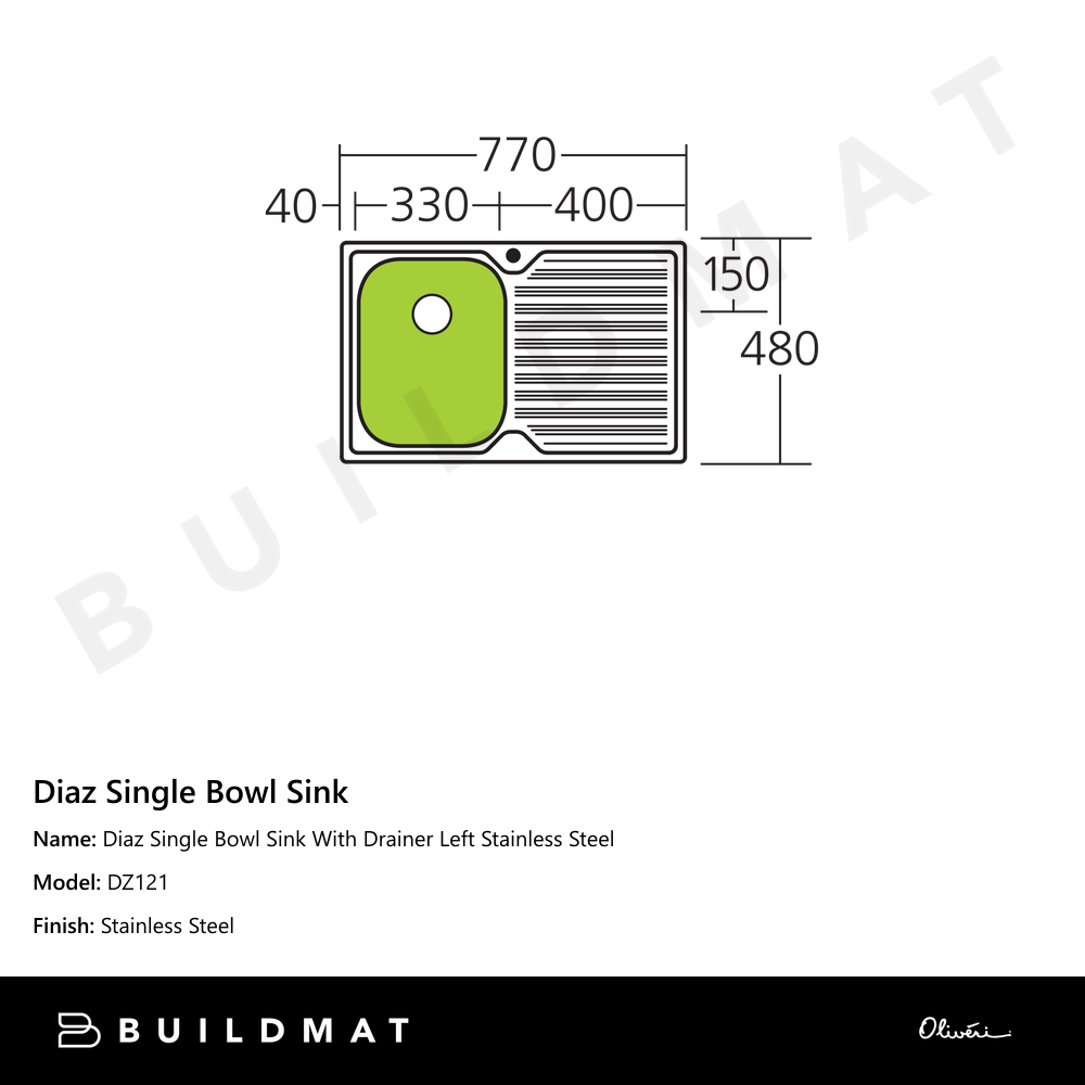 Diaz Single Bowl Sink With Drainer Left Stainless Steel