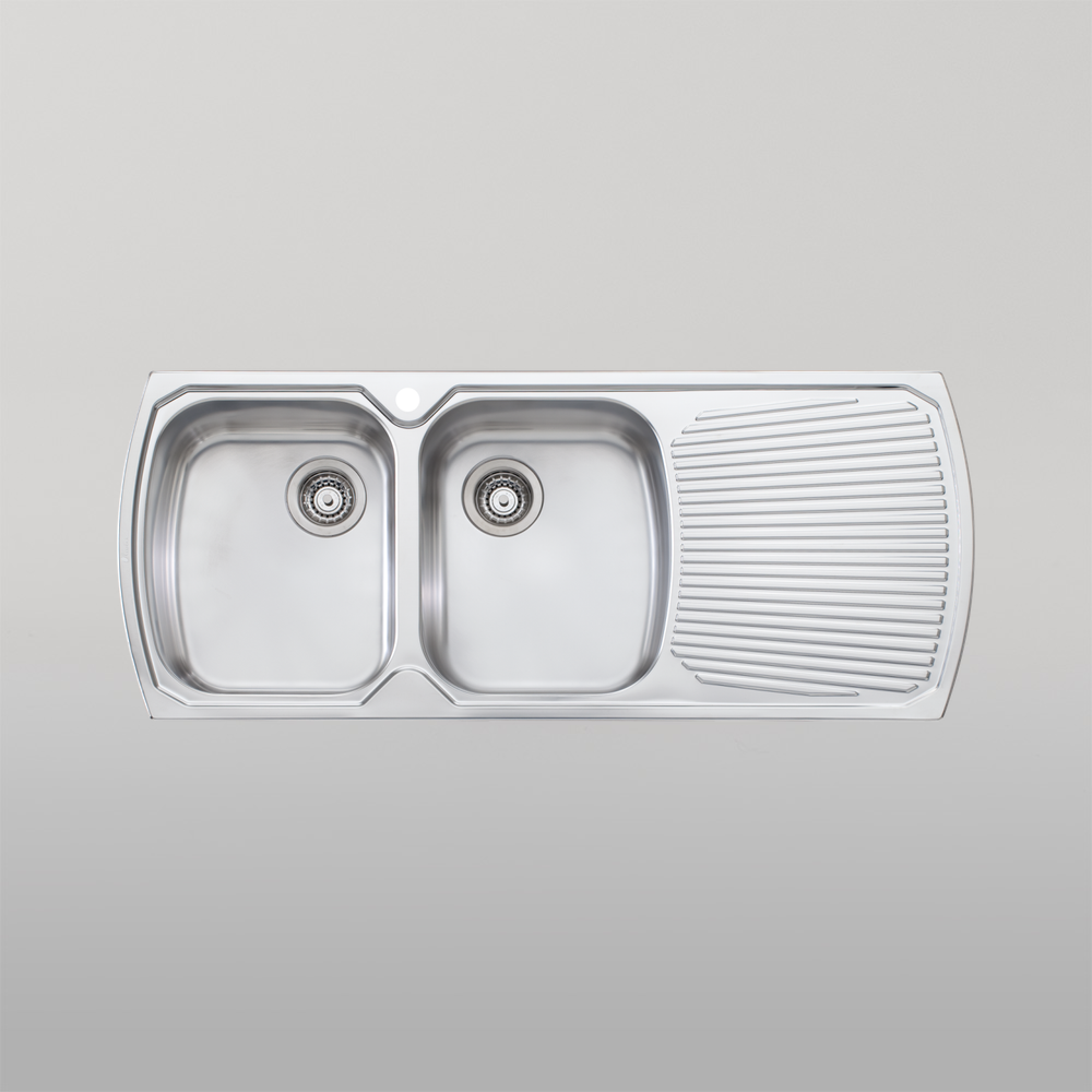 Monet Double Bowl Topmount Sink With Drainer Left Stainless Steel