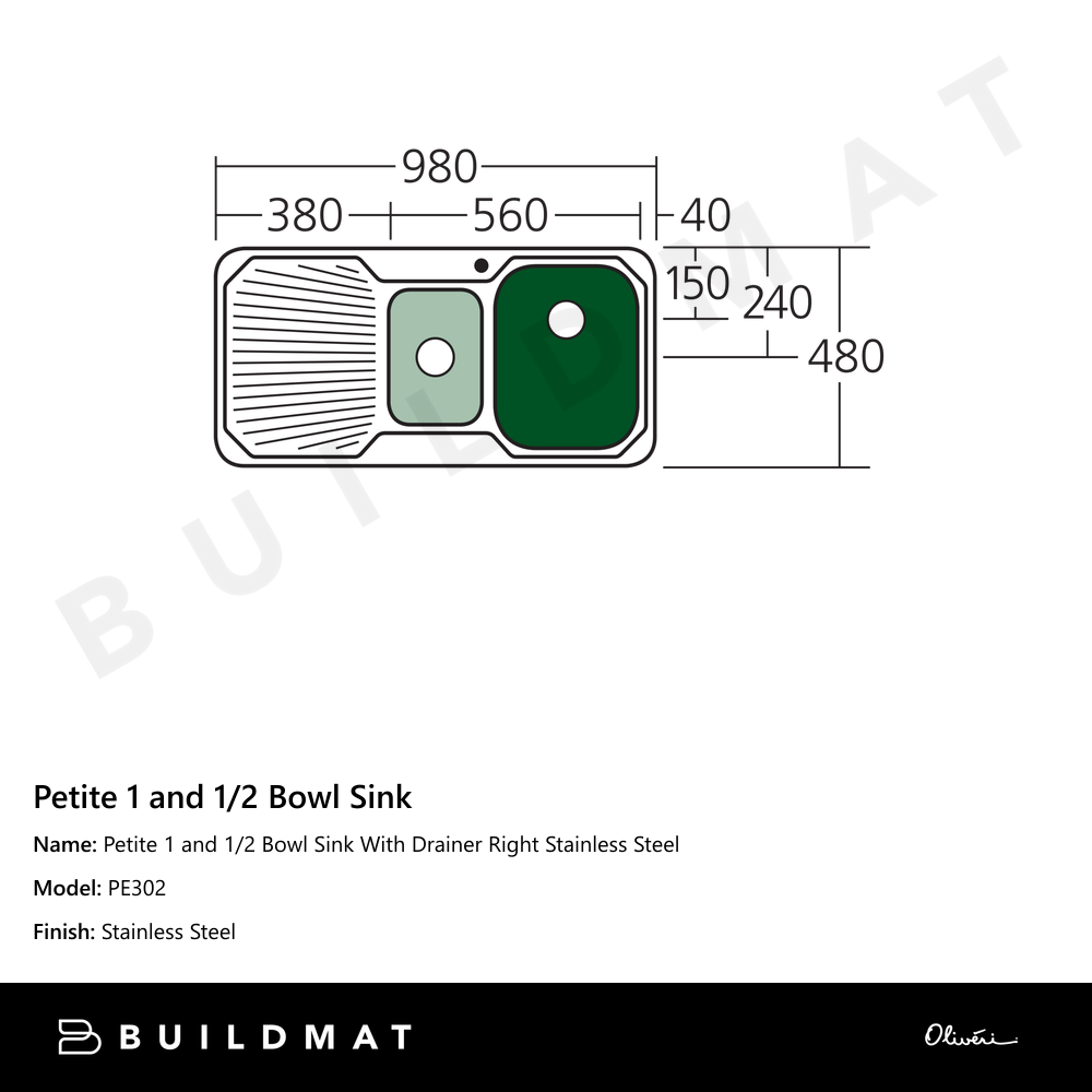Petite 1 And 1/2 Bowl Sink With Drainer Right Stainless Steel