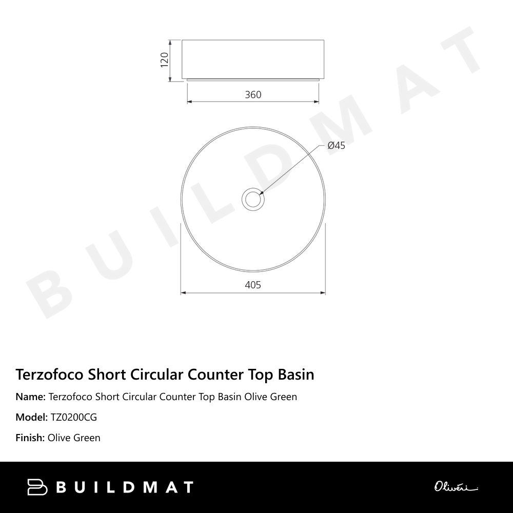 Terzofoco Short Circular Counter Top Basin Olive Green