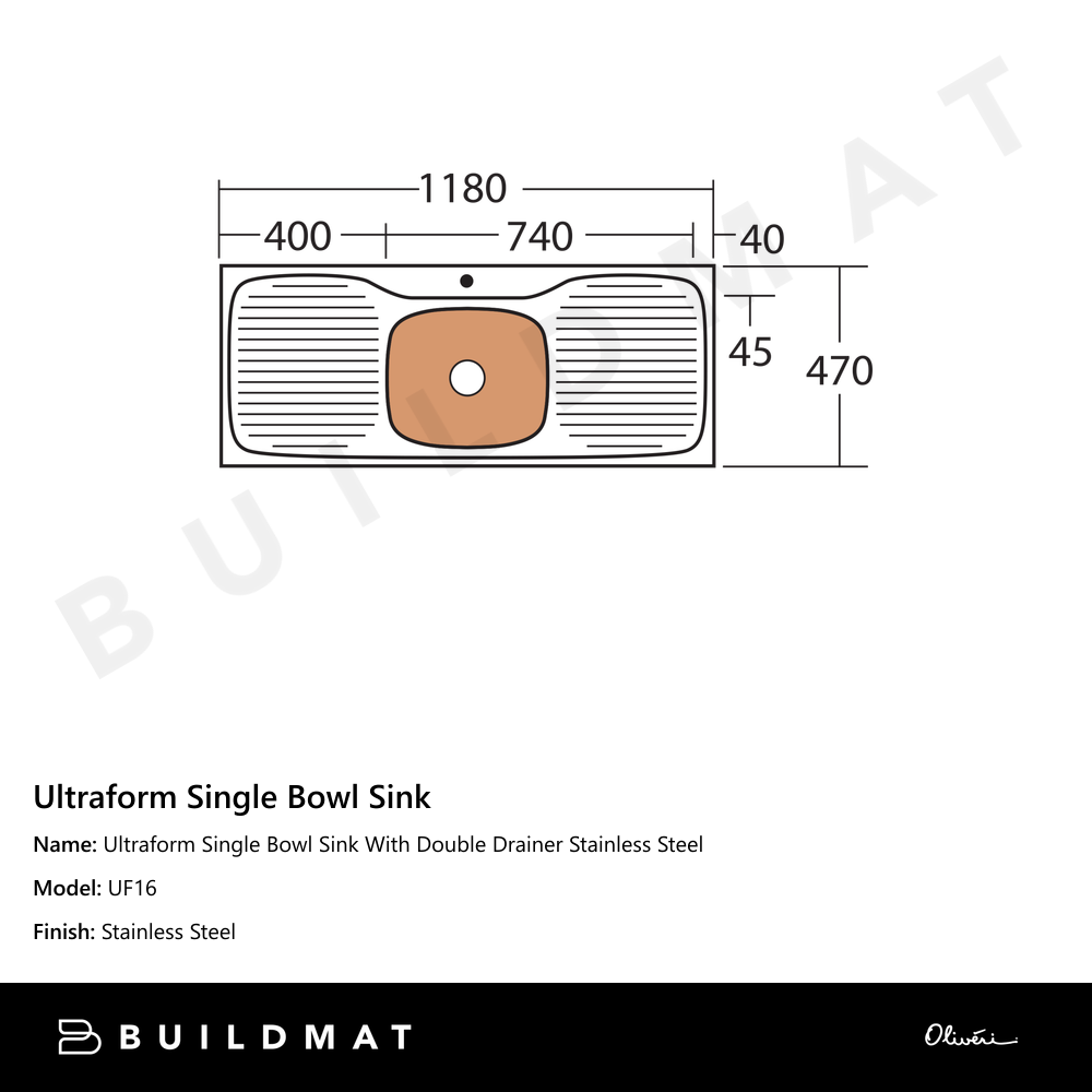 Ultraform Single Bowl Sink With Double Drainer Stainless Steel