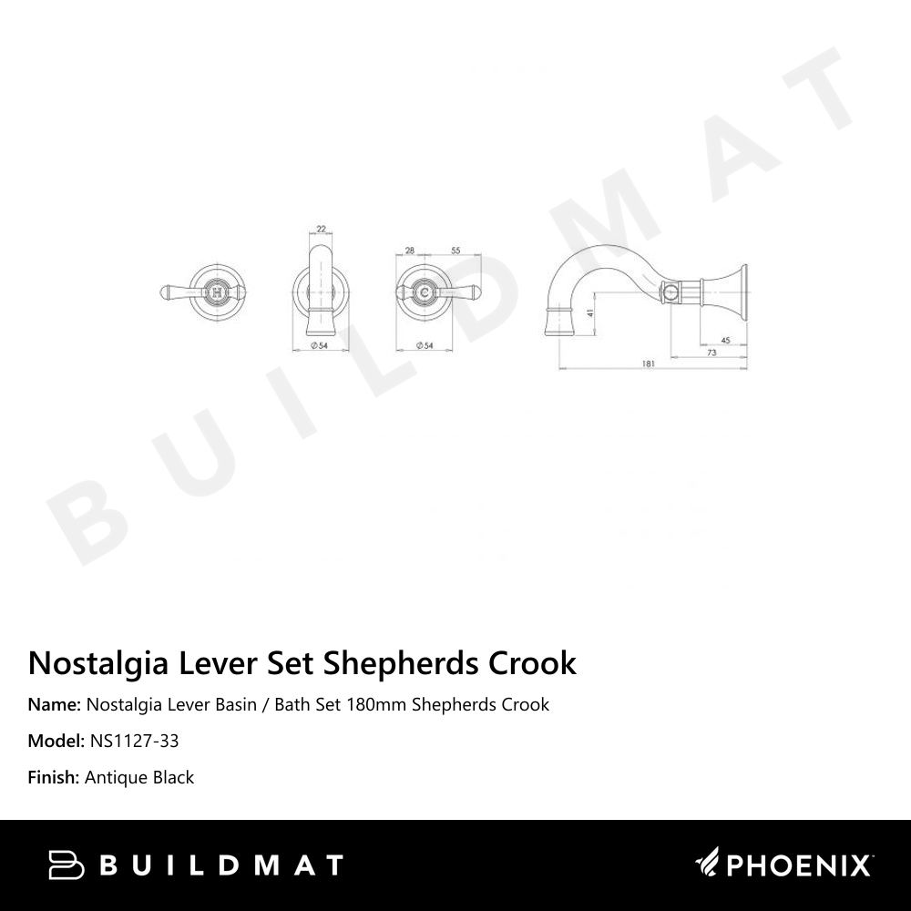 Nostalgia Lever Basin / Bath Set 180mm Shepherds Crook Antique Black