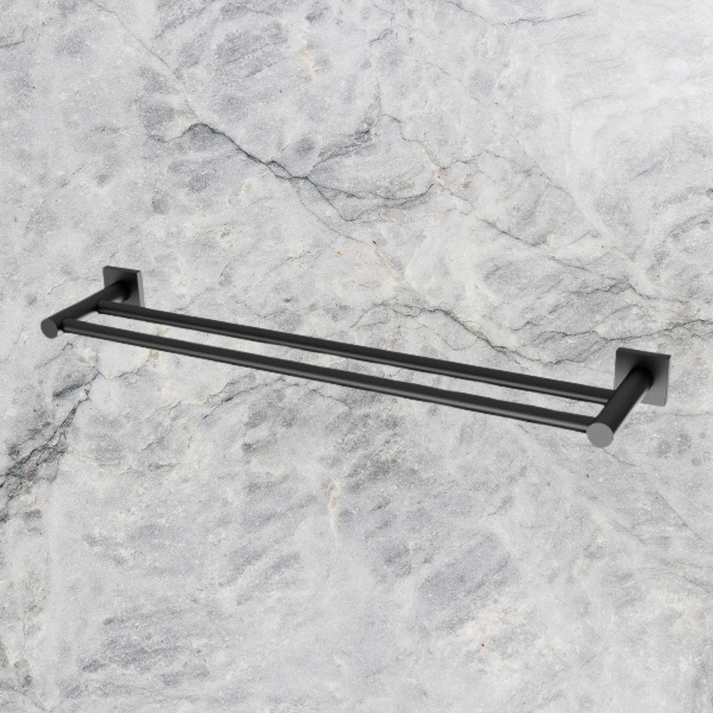 Radii Double Towel Rail 600mm Square Plate Matte Black