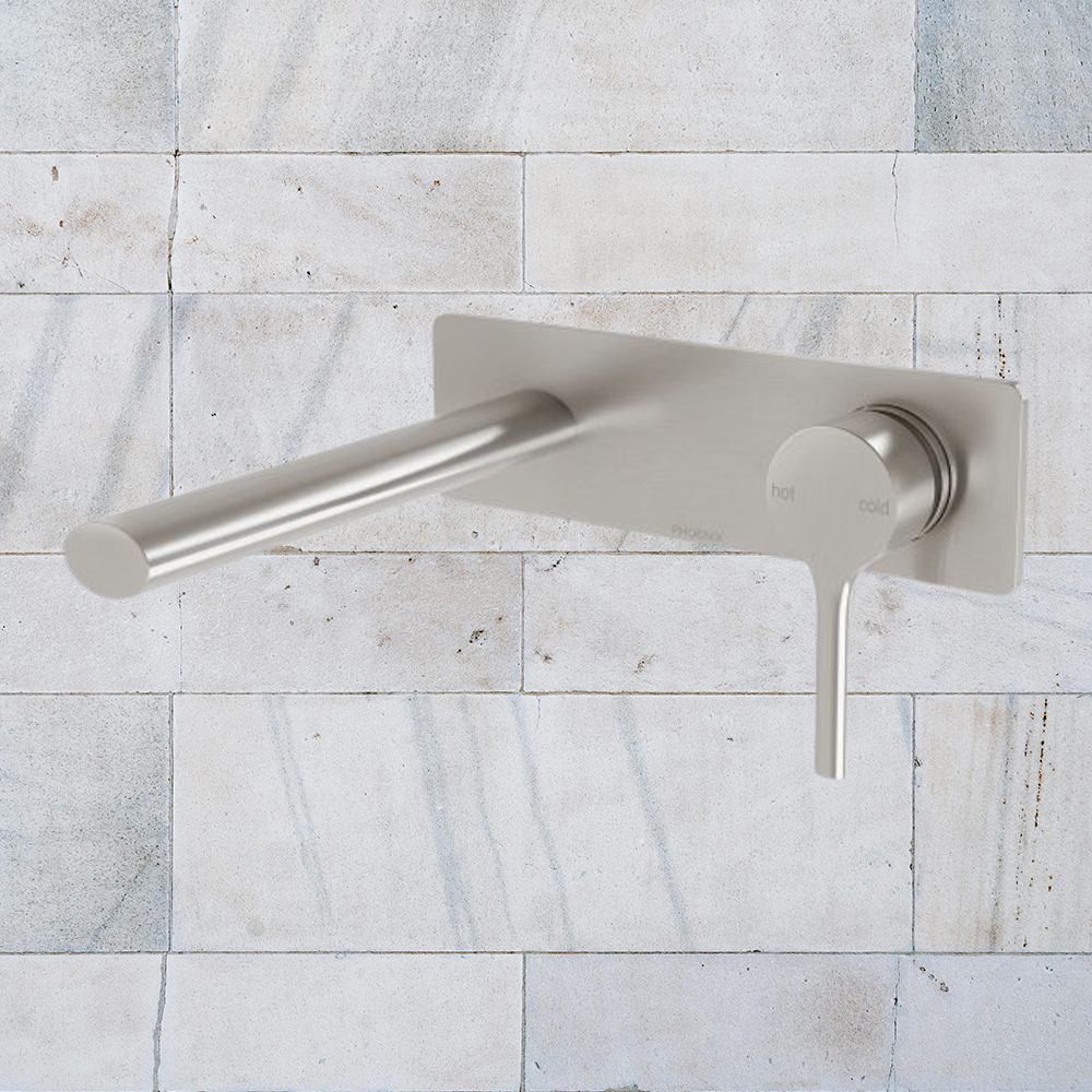 Vivid Slimline Oval Wall Basin Mixer Set 175mm Brushed Nickel