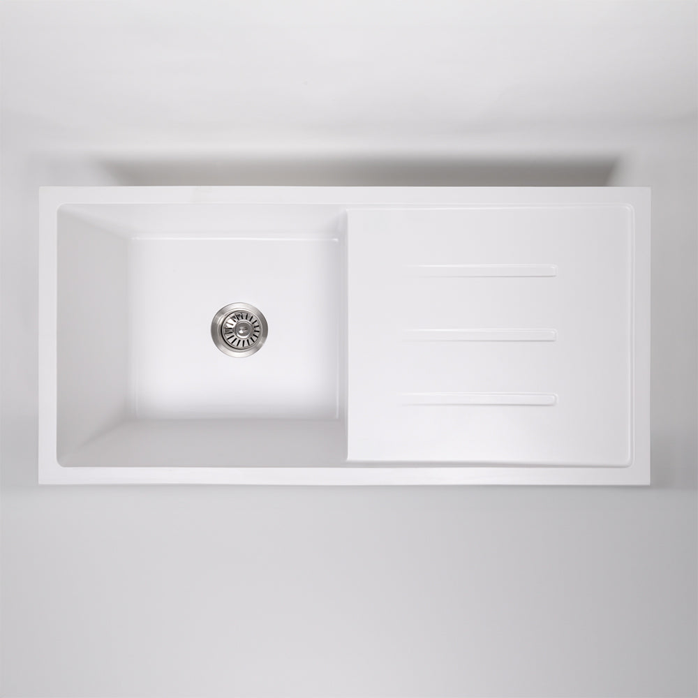 Randall 1000x500 White Granite Drainboard Single Bowl Sink