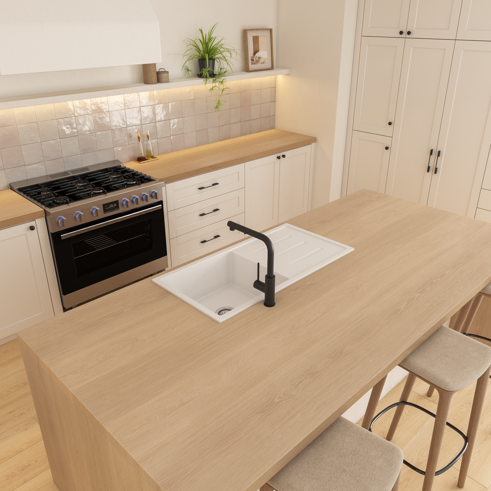 Granite sinks are the epitome of contemporary style with a hint of natural ambiance. Providing a seamless fusion of elegance and practicality to any kitchen environments. With resilience against heat, scratches, chips and stains not only make this sink a valuable addition but also serves as the perfect sink to complement diverse kitchen interiors and preferences.