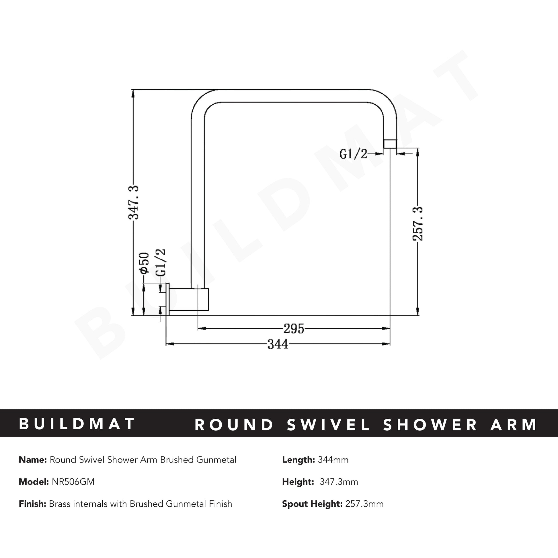 Round Swivel Shower Arm Brushed Gunmetal