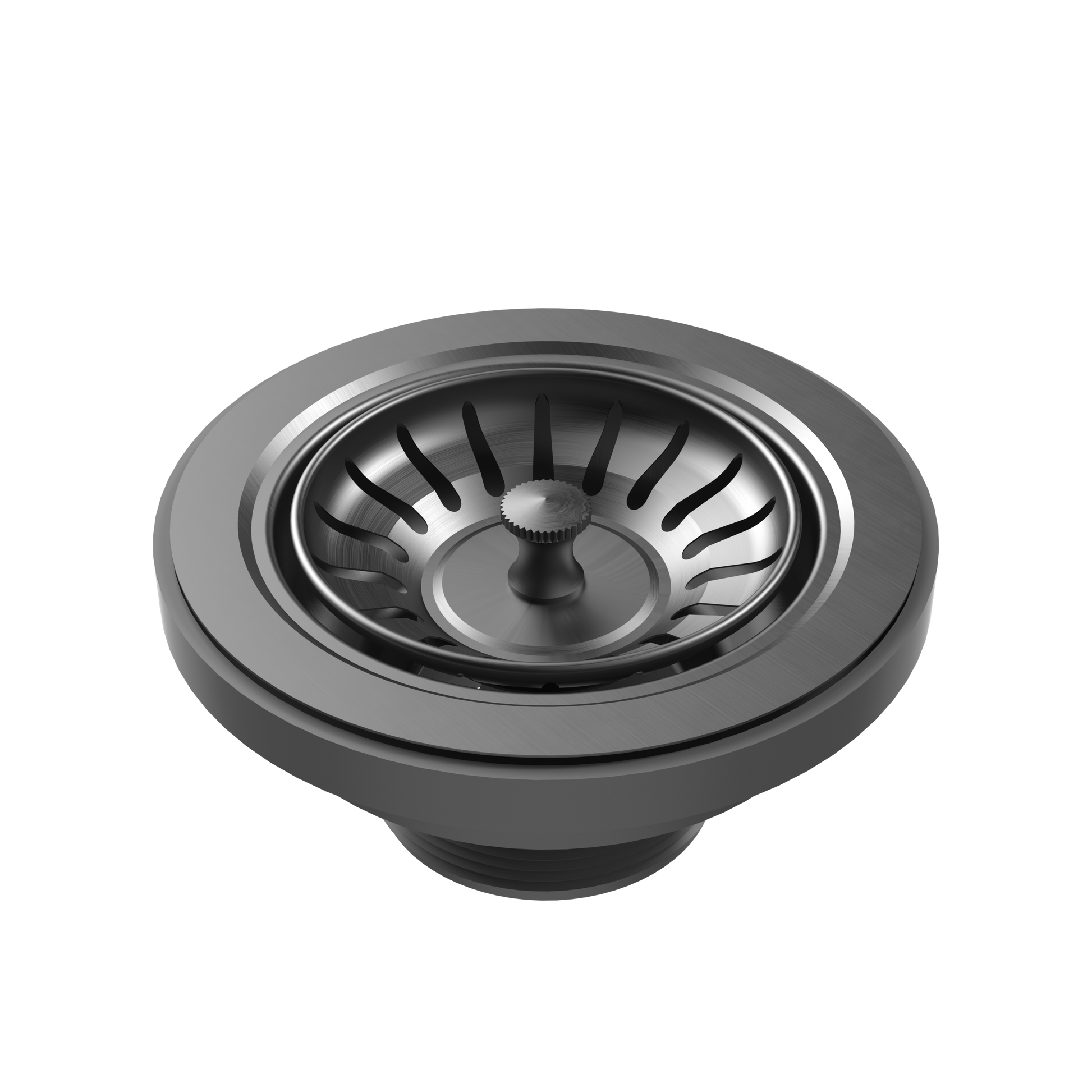 • Pull-out strainer to capture food scraps and doubles as a plug by simply pushing down the strainer